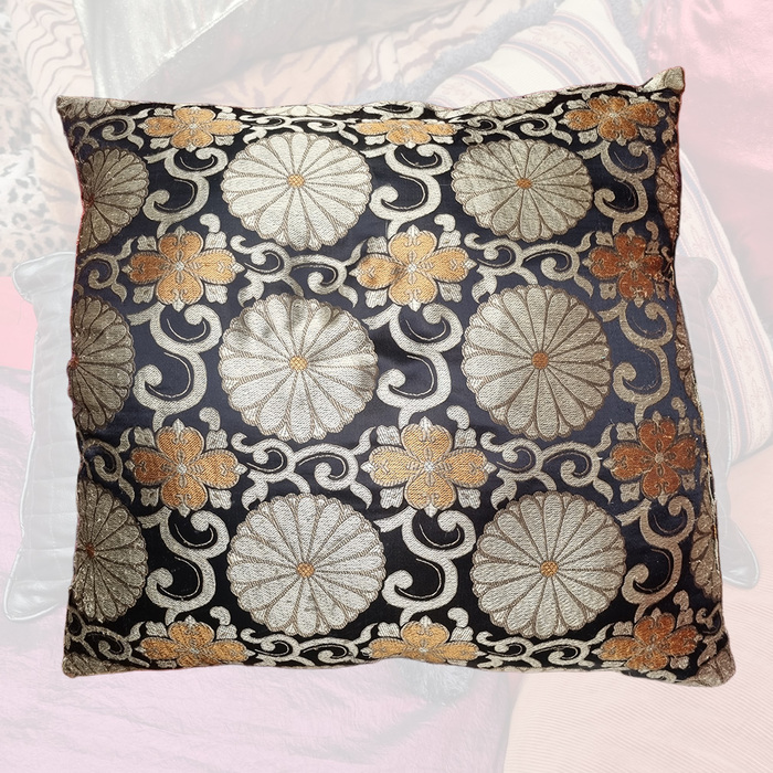 Cushion Large - Moroccan Black, Gold, Silver & Orange (42cm)