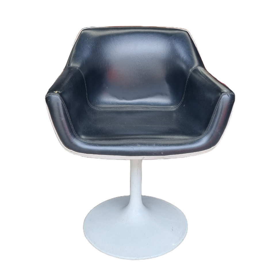 Black & White Vinyl Swivel Tulip Chair 1960’s ( H: 79cm x W: 63cm x Base Dia: 44cm x Seat H: 49cm)