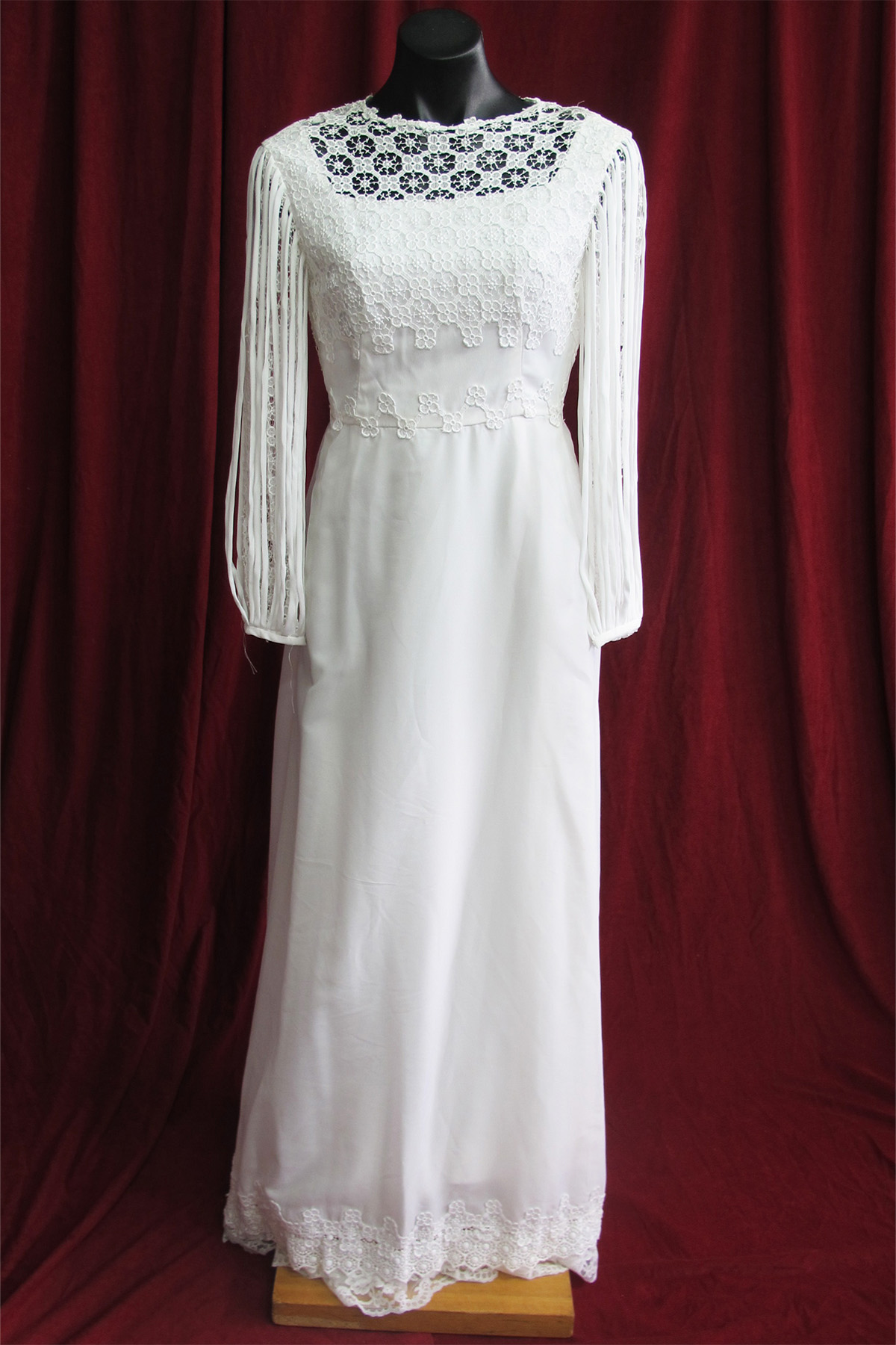 Wedding Dress 1970s Lace Bodice Spaghetti Sz. 10