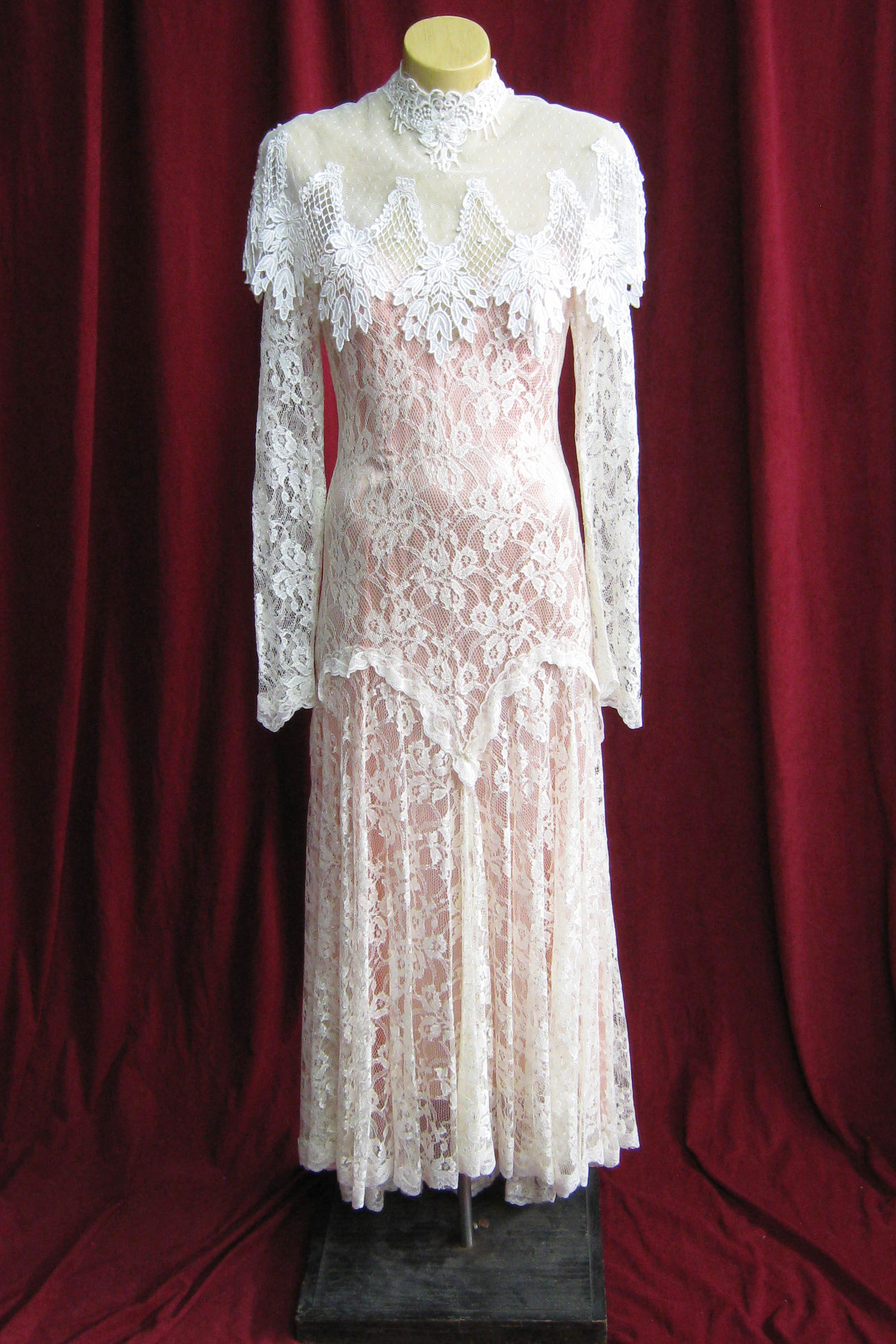 Wedding Dress 1920s Pink With Lace Overlay SZ8
