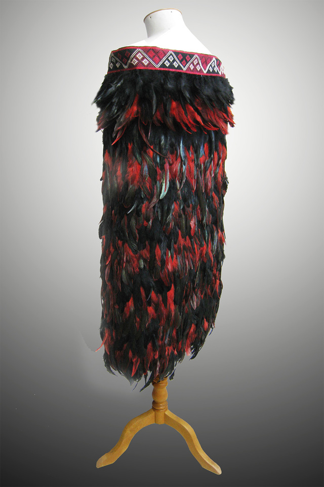 Red/Black Feathered Cloak Back View
