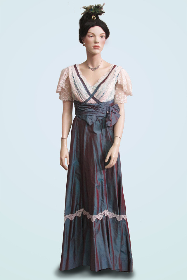 Evening Dress Cream Lace Bodice with Blue/Purple Shot Taffeta Skirt, 1900s