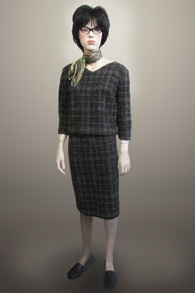 2 Piece Skirt and Top Textured Brown Wool 1960s