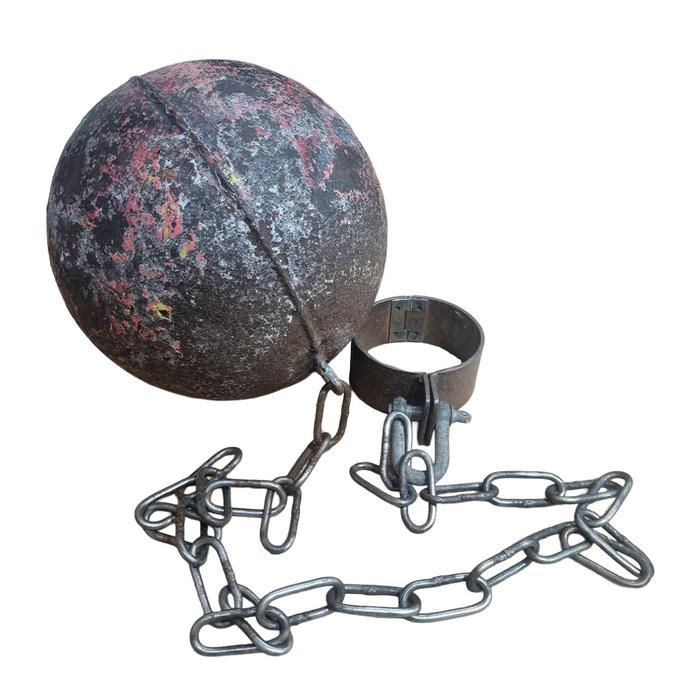 Metal Ball & Chain Manacles - Large Ball (Cuff Dia: 8.5cm, Chain L: 110cm, Ball Dia: 20cm)