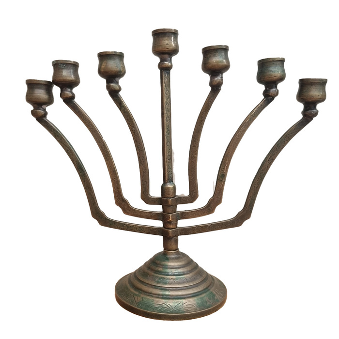 Menorah - 7 Branch Temple Style Bronze / Brass (H: 25cm x W: 11cm x L: 28cm)