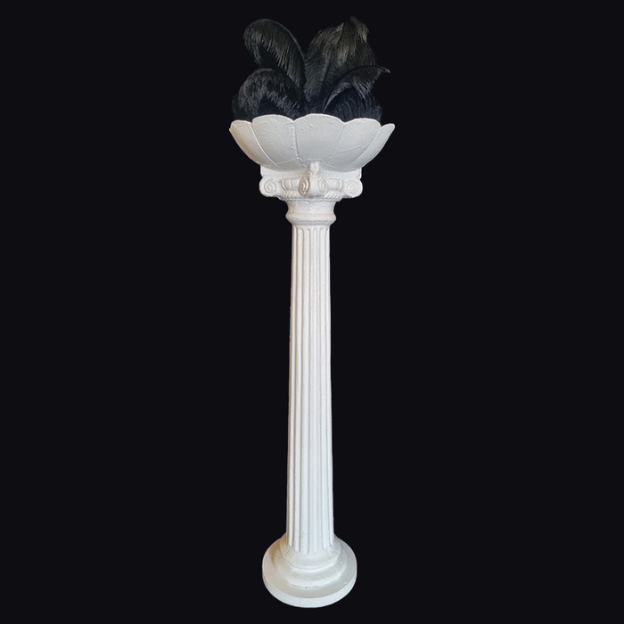 White Planter Column With Black Feather Arrangement