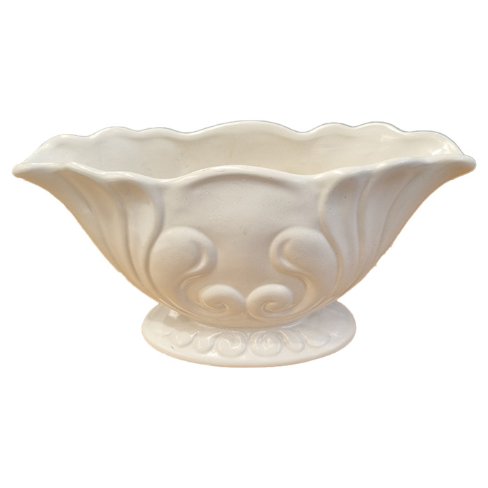 Porcelain Vase - White Oval Crown Lynn w/ Scalloped Edges (H: 12cm x L: 27cm x W: 9cm)