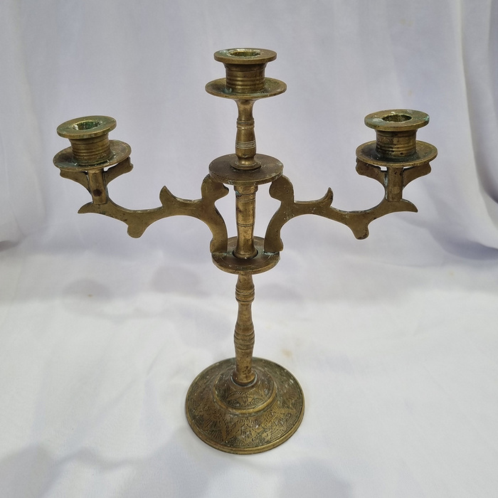 Brass Candlestick - 3 Holder (H :29cm x W: 9.5cm x L: 25cm)