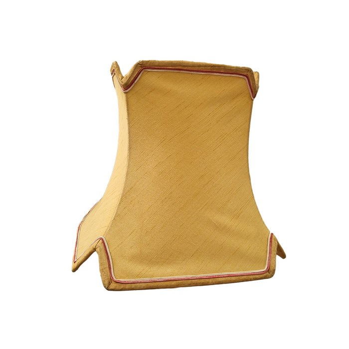Table Lamp Shade #27 - Cut Corner Inverted Square Bell - Yellow w/ Red Pipping (H: 33cm x Top: 25cm x 15cm x Bottom: 37cm x 29cm)