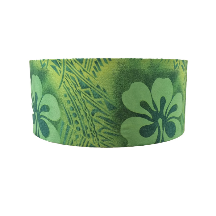 Standing / Table Lamp Shade #24 - Shallow Drum Green Hibiscus Print (H: 17.5cm x Top: 41cm x Bottom: 41cm)