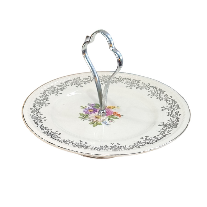 Cake Stand, 1 Tier, Porcelain w/ Handle In Middle (H: 17cm x Dia 23cm)
