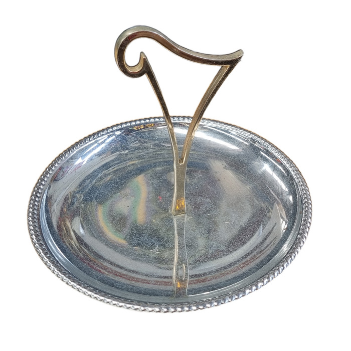 Cake Stand, 1 Tier, Silver w/ Handle In Middle (H: 17cm x Dia 23cm)