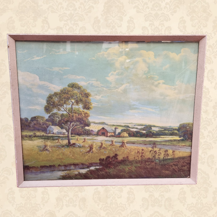 Framed Print - Wheat Field w/ House & Barn (H: 42cm x W: 52cm)