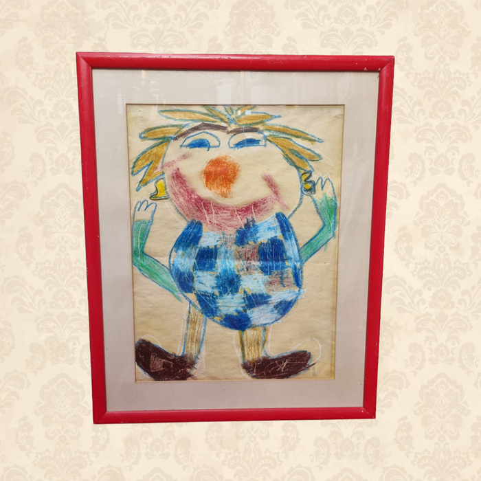Framed Kid’s Drawing - Person w/ Chequered Shirt (H: 55cm x W: 44cm)
