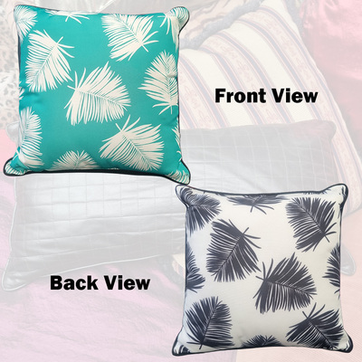 Cushion Outdoor - Teal, Black & White w/ Ferns (15cm)