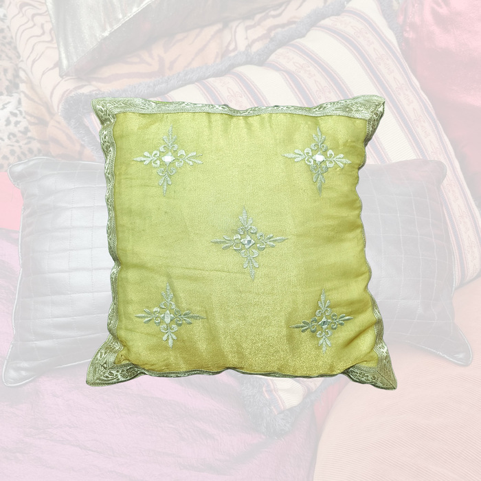Cushion Small - Light Green Silk w/ Embroidery (38cm)
