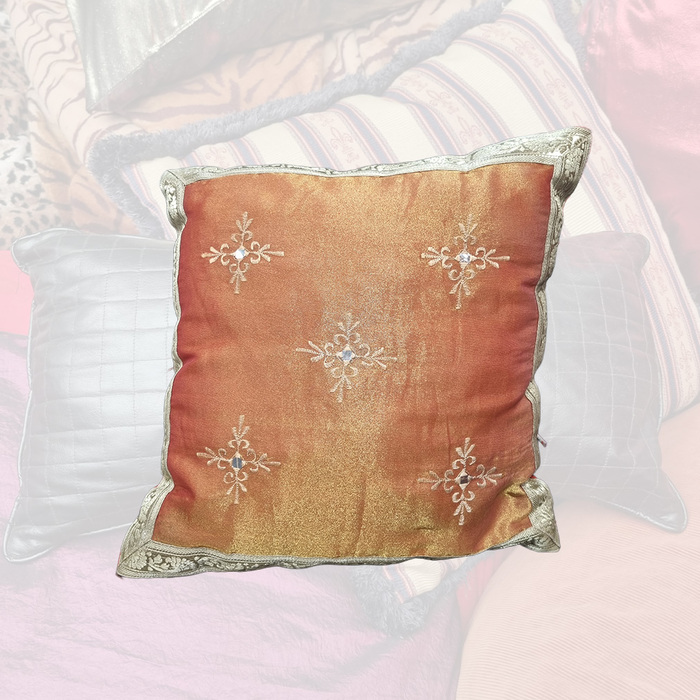 Cushion Small - Red Silk w/ Embroidery (38cm)