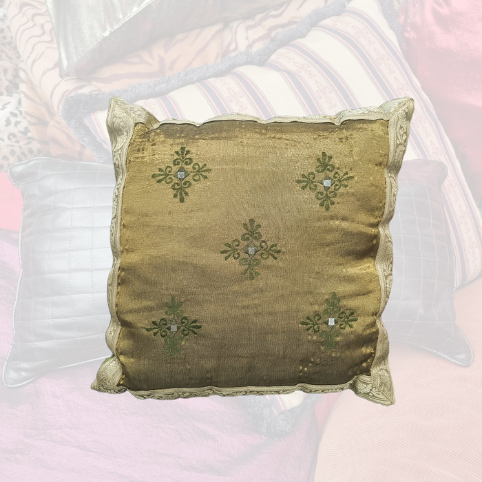 Cushion Small - Dark Green Silk w/ Embroidery (38cm)