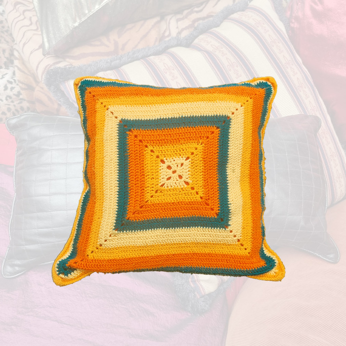 Cushion Small - Green & Orange Crochet (50cm)