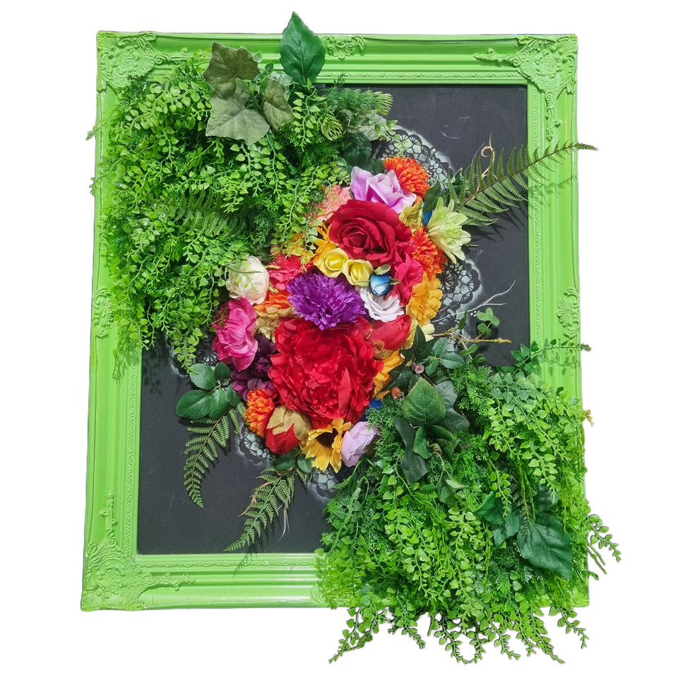 Green Framed 3D Flower & Fauna Collage (H: 70cm x W: 60cm)
