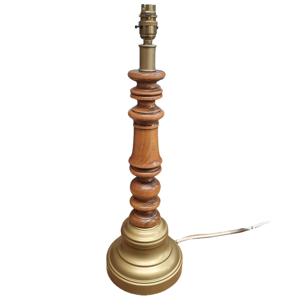 Gold & Wood Table Lamp w/ Shade #13 (H: 54cm x Base Dia: 17cm) - Working