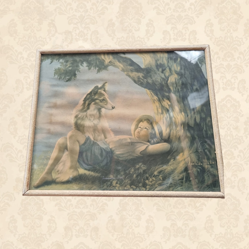 Framed Poster - Child w/ Dog Under Tree (H: 31cm x W: 56cm)