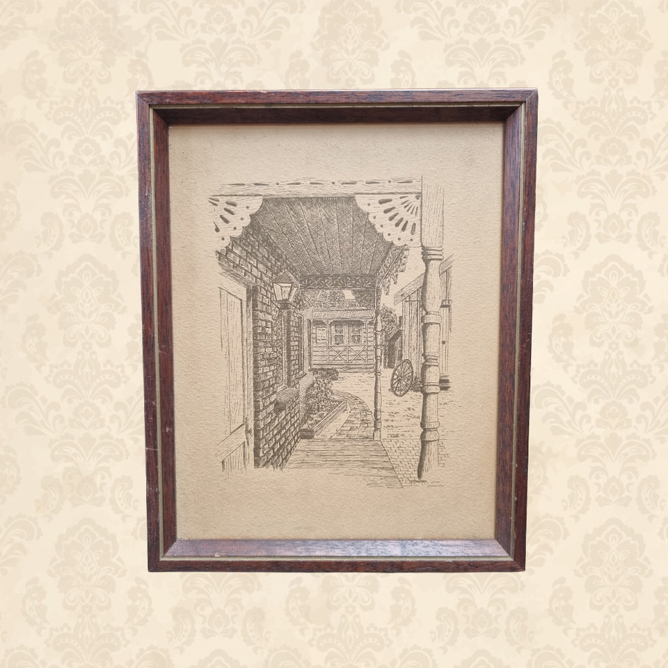 Framed Poster - Historic Street w/ 1885 By D M Stafford (H: 28cm x W: 22cm)