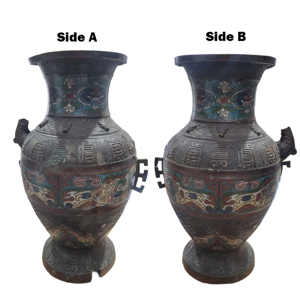 Japanese Bronze Champleve Enamel vase w/ Pre existing damage (H: 36cm x Base Dia: 14cm x Top Dia: 15.5cm)