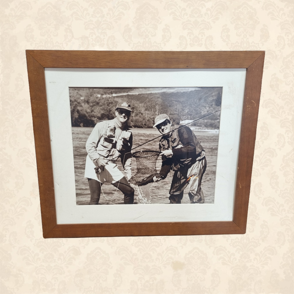 Framed Photo - Black and White Men Fishing with Fish (H: 50cm x W: 58cm)