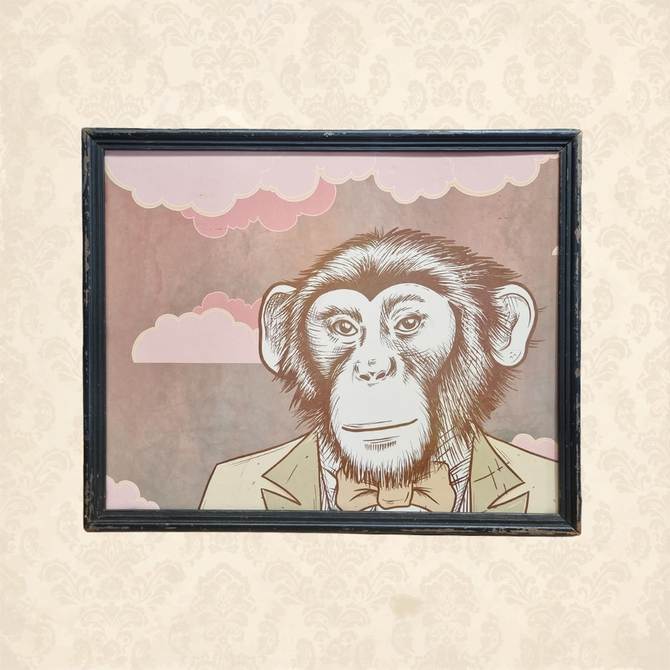 Framed Print - Pastel, Business Monkey (H: 43.4cm x W: 54cm)