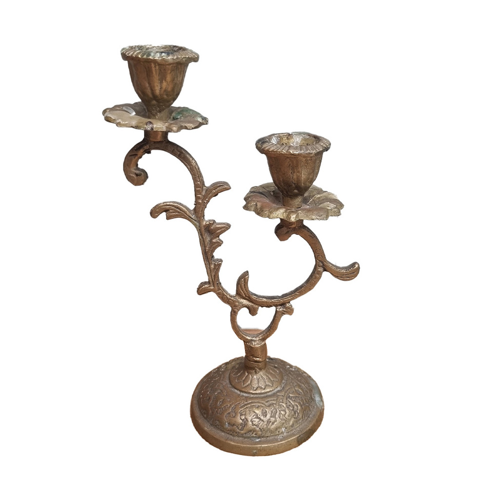 Brass Candlestick - 2 Holder w/ Flower Design (H :19cm x W: 7 cm x L: 13 cm)